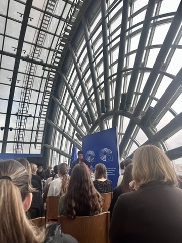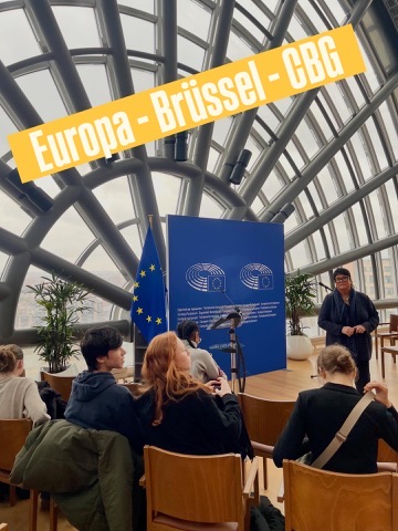Als Gewinner des Wettbewerbs „Deine Stimme für Europa“ durfte der Forderkurs Gesellschaft gemeinsam mit der Hörspiel-AG auf Einladung von Frau Verheyen das Europäische Parlament in Brüssel besuchen. Wir erhielten spannende Einblicke in die Arbeit der Dolmetscher*innen, die Social-Media-Aktivitäten im Parlament und durften sogar die Pressetribüne mit Blick in den Plenarsaal besuchen.
