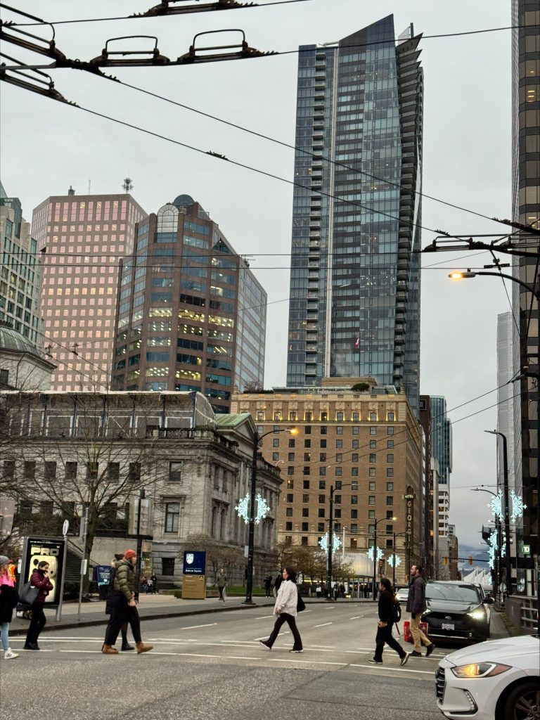 Am zweiten Tag haben meine Freunde und ich Vancouver Downtown erkundet und geshoppt. Am Abend waren wir auch auf dem Weihnachtsmarkt in der Vancouver Innenstadt, der war wesentlich größer und hat mich sehr an zuhause erinnert, weil dort viele deutsche Sachen verkauft wurden, zum Beispiel Bratwurst:).