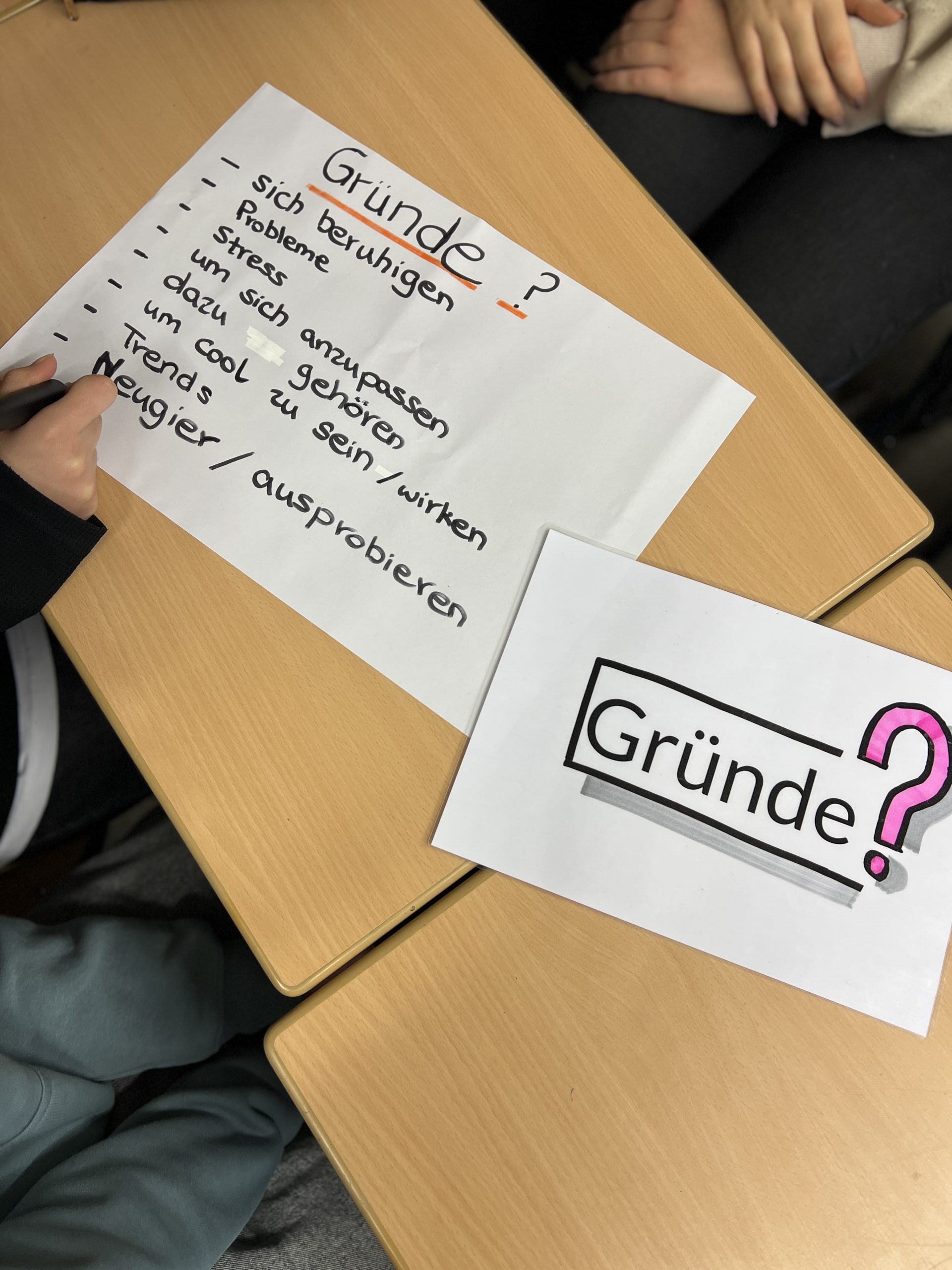 Präventionseinheit zum Thema Sucht im Jg 8