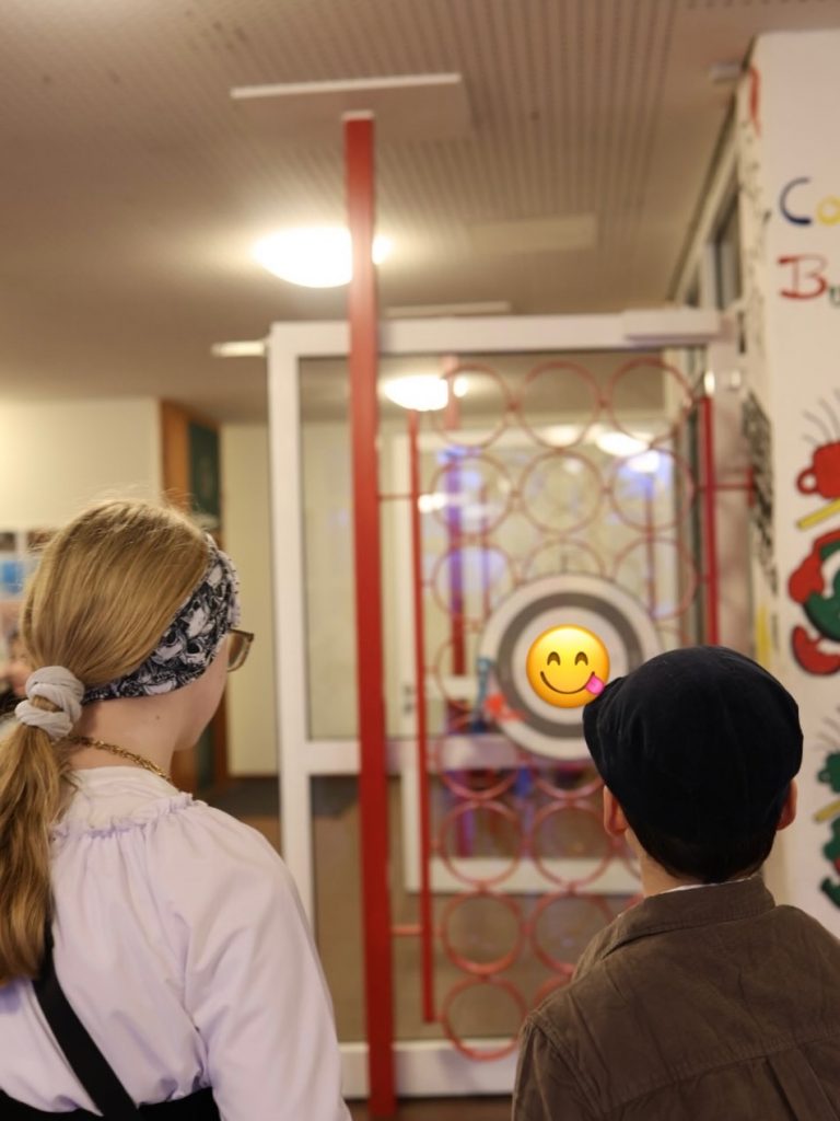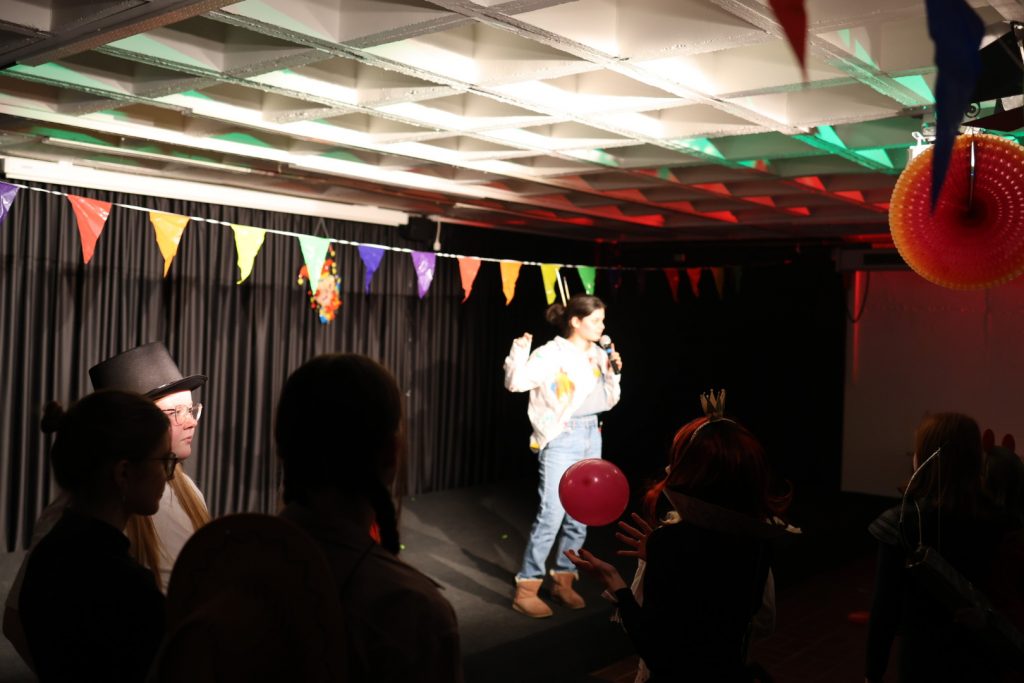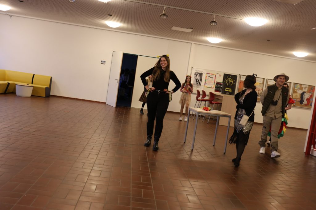 Im Foyer gab es Hotdogs und Laugenstangen, während im Burgh-Keller zu den besten Karnevalshits ordentlich abgerockt wurde. Wer eine Pause brauchte, konnte in der Eingangshalle beim Dosenwerfen, Bottle-Flip oder dem Sackwurf sein Geschick beweisen – liebevoll betreut von unseren Mentor*innen.