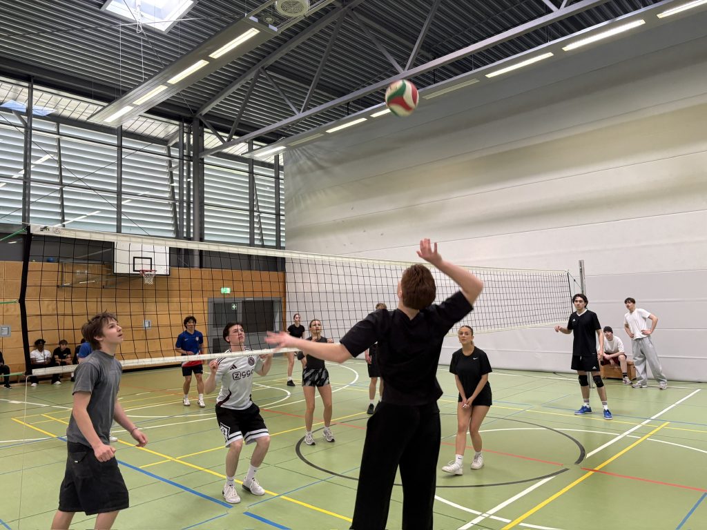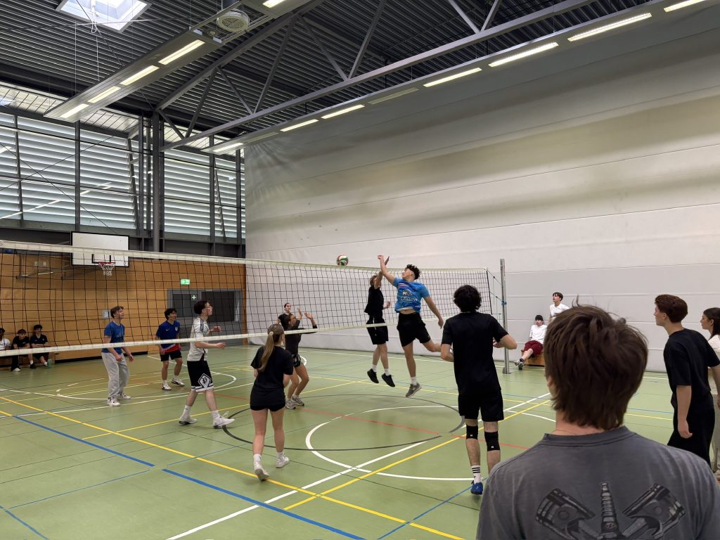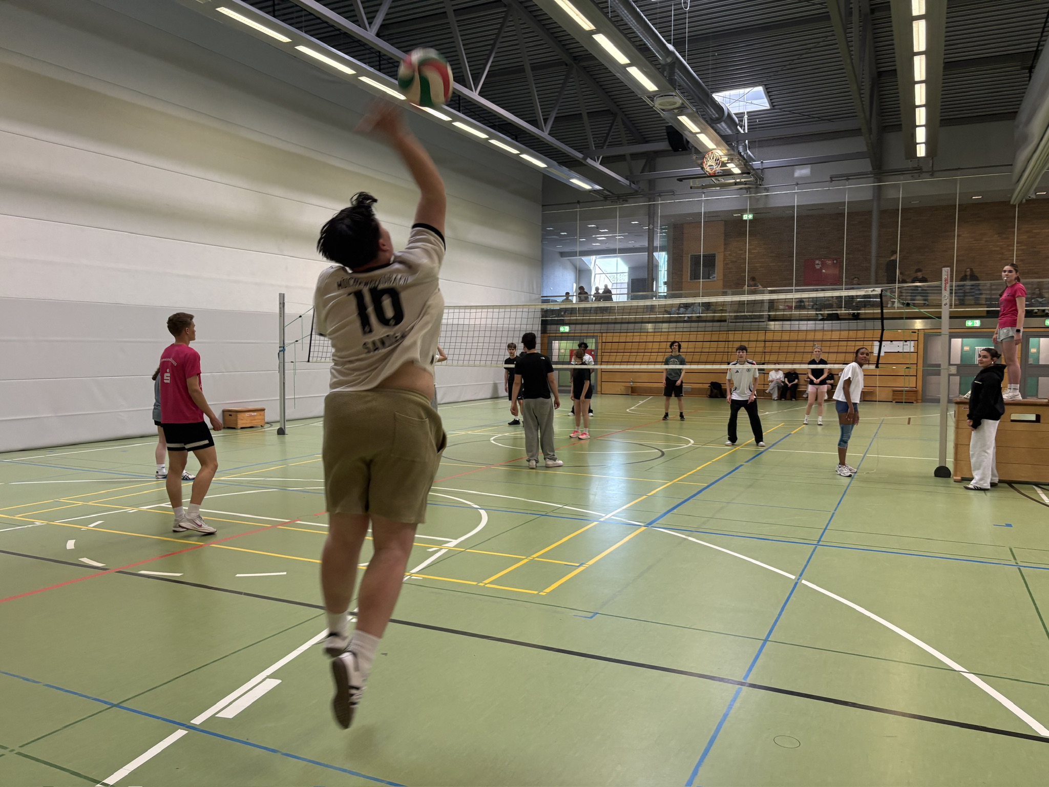 Beim diesjährigen Volleyballturnier der EF traten Schüler*innen aus drei Sportkursen mit insgesamt sechs Mannschaften gegeneinander an. In zwei Gruppen wurden nach der Vorrunde zunächst die Halbfinalisten ausgespielt, bevor es in die entscheidenden Platzierungsspiele ging.