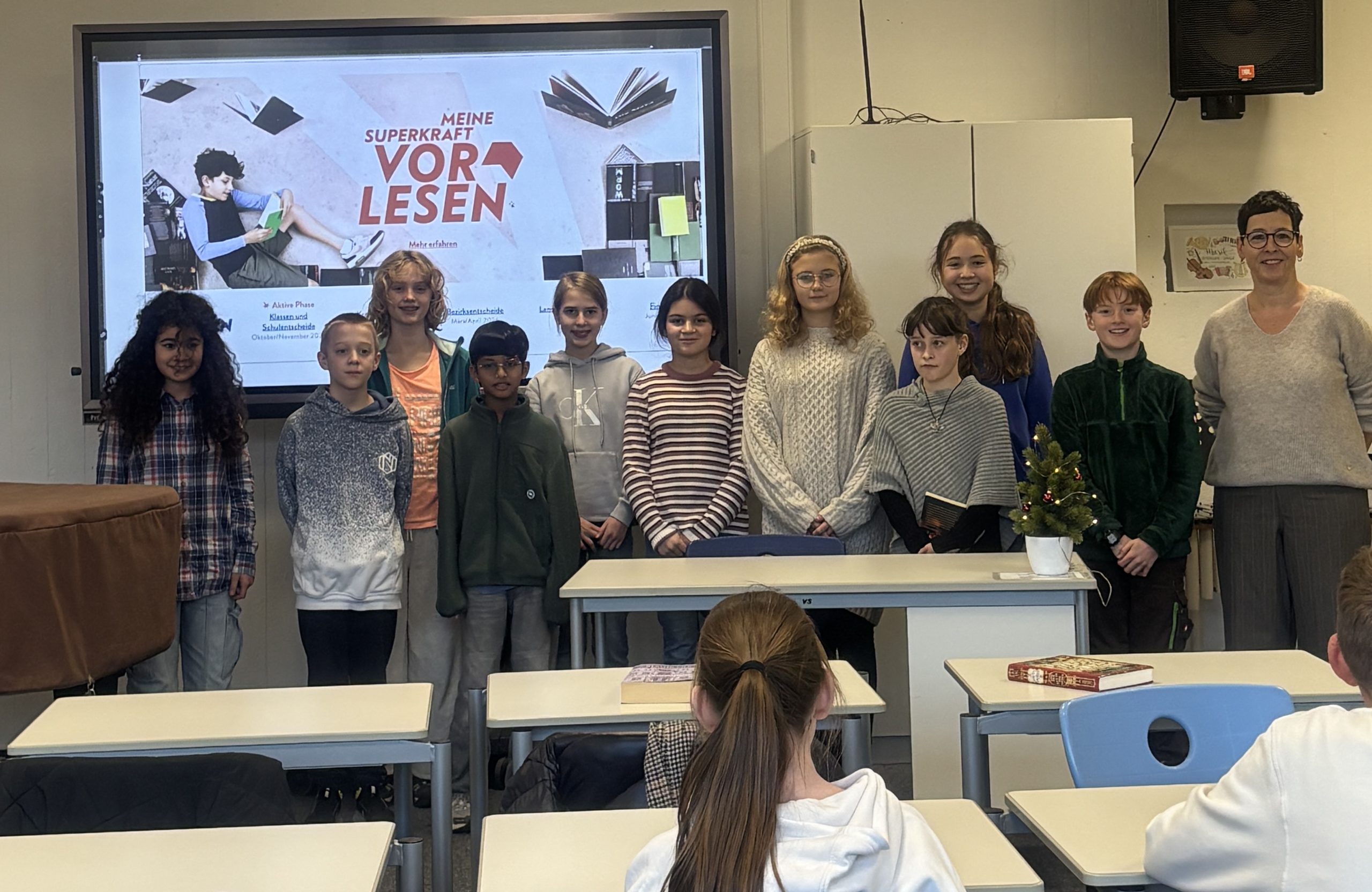 Am Freitag, den 05.12., traten die Klassensieger*innen der fünf Sechserklassen beim Schulentscheid des diesjährigen Vorlesewettbewerbs gegeneinander an. 10 großartige Vorleser*innen haben uns mit spannenden Geschichten begeistert! Herzlichen Glückwunsch an Kavin Lukshumykumar aus der 6c, der mit einem Auszug aus Percy …